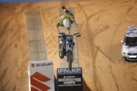 Francūzis Remi Bizārs 25. oktobrī Rīgā ar spīdošu uzstāšanos, apsteidzot pasaules čempionu Ailo Gaupu un uzvarot FIM pasaules motofrītaila čempionāta 8. posmā "Suzuki NIGHT of the JUMPs", ir spēris milzīgu soli 2008. gada Pasaules čempiona titulam. Arī norvēģis Ailo Gaups parādīja lielisku sniegumu, kas tam ļāva apsteigt čehu Liboru Podmolu un izcīnīt sudraba godalgu. Foto: Jānis Barbars / www.rallyemotions.net Lasīt visu rakstu... Publicēts 26. oktobrī, 2008. Autors: Ziņu aģentūras BNA LATVIA fotoziņas.